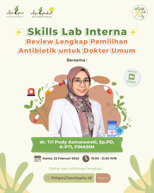 Masalah resistensi antibiotika merupakan persoalan dunia yang harus segera diatasi. Dokter umum sebagai lini pertama di fasilitas kesehatan primer, perlu mengetahui prinsip pemilihan antibiotik yang bijak dan rasional. Dokter akan mendapatkan Benefit seperti Qualified Trainer, PDF Learning materials, Interactive Case-Based, Discussion, Recorded Video, & Certificate