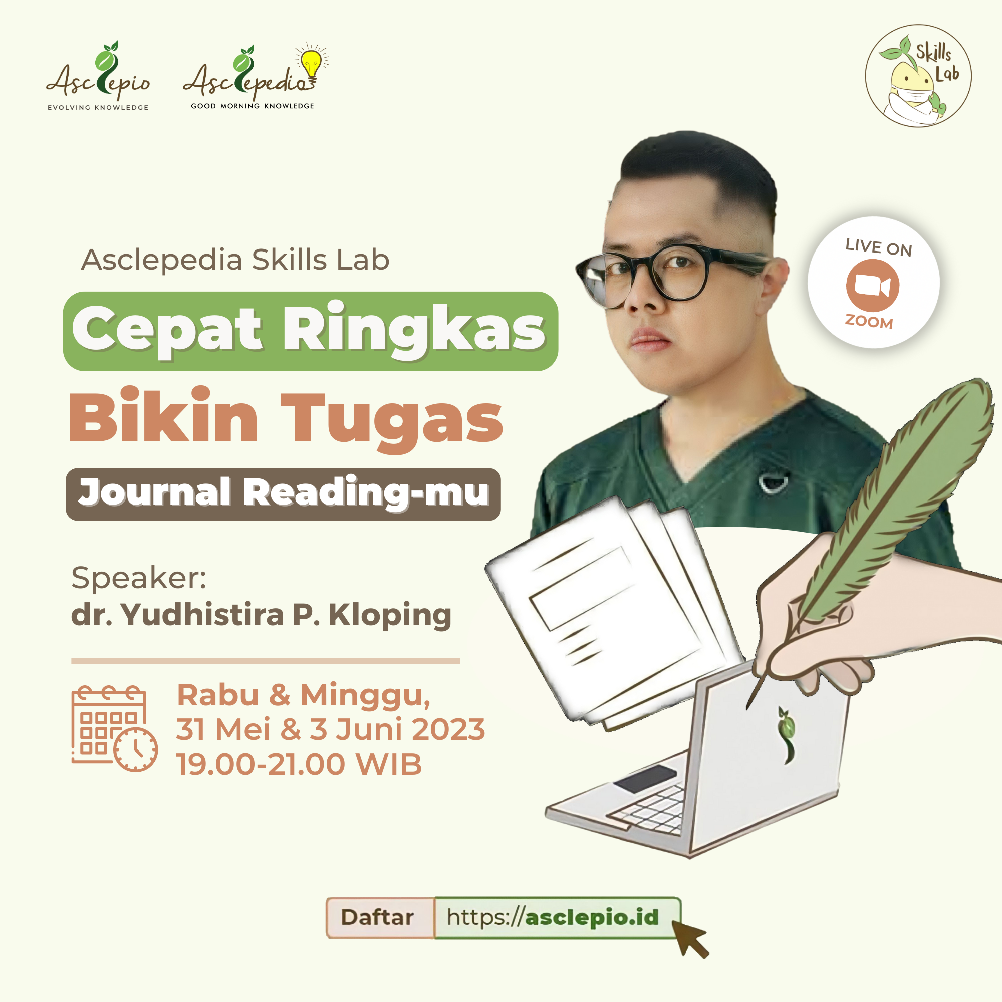 Asclepedia skills lab: Cepat Ringkas Bikin Tugas Journal Reading merupakan skills lab 2 pertemuan yang akan membahas tuntas cara cepat membuat journal reading!