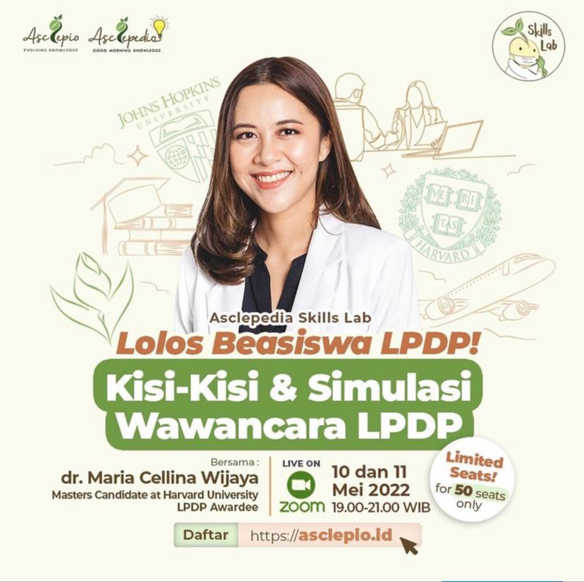 Asclepedia Skills Lab: Tips Jitu Menjawab Pertanyaan Interview Lolos Beasiswa LPDP merupakan skills lab dengan 2 pertemuan selama 2 jam bersama speaker yang akan mengupas tuntas pertanyaan interview agar lolos beasiswa LPDP!